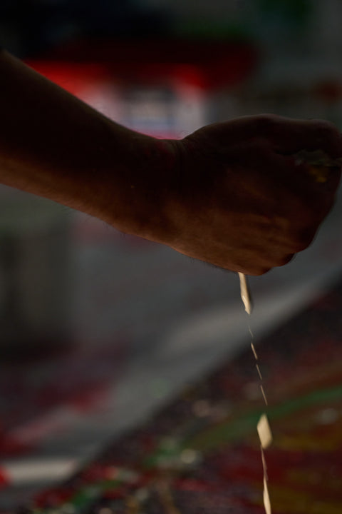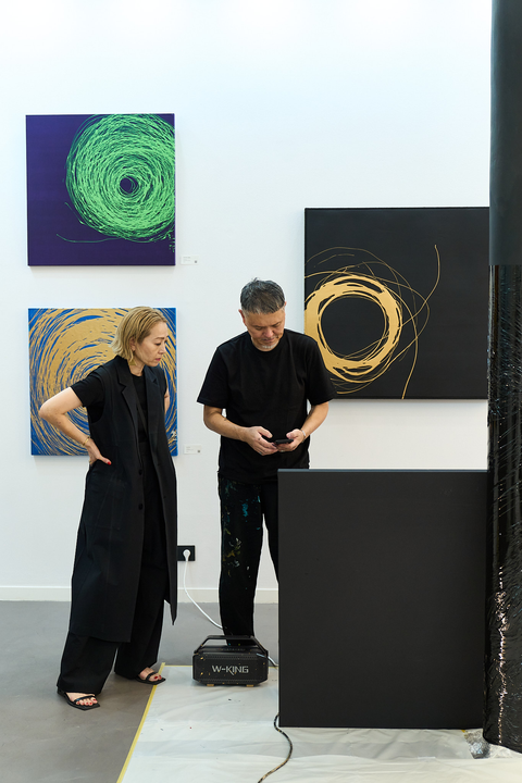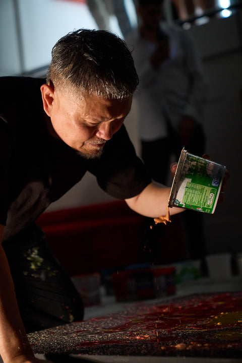 GURUGURU también refleja su filosofía esencial: “pintar en el aire”, es decir, crear sin tocar, sin intención prefijada. La obra emerge de manera orgánica, invitando a cada persona a interpretarla libremente.
